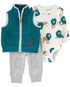 Crafted in soft doubleknit with an easy zip up the front, this vest pairs with a long-sleeve bodysuit and a pair of easy on pants.